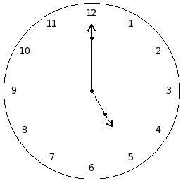 Where will the hour hand of a clock stop,