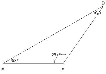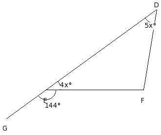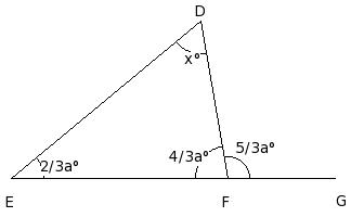 In the given figure, △DEF in which side EF has been produced to G. If ∠FDE = x° , ∠DEF = (2/3a)° , ∠EFD = (4/3a)° and ∠DFG = (5/3a)°, find the values of a and x.