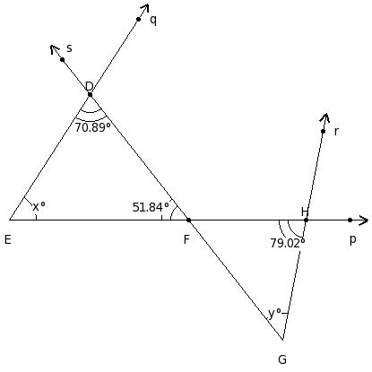 In the following figure EF ∥ HG, find the values of x and y.