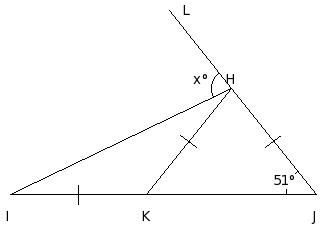 Two angles of a triangle measure 51° and 53° respectively. Find the measure of the third angle of the triangle