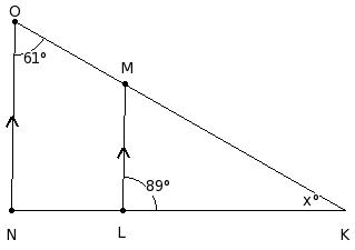 In the given figure, it is given that ML ∥ ON , ∠MON = 61° and ∠MLK = 89°. Find the value of x.