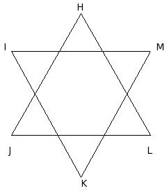 In the given two equilateral triangles, find ∠H + ∠J + ∠L + ∠I + ∠K + ∠M .