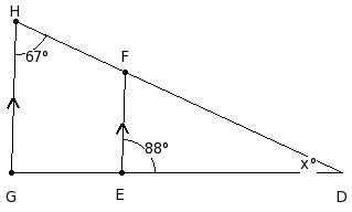 In the given figure, it is given that FE ∥ HG , ∠FHG = 67° and ∠FED = 88°. Find the value of x.