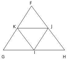In the given figure, points I , J and K are the mid-points of sides GH, HF and FG of △FGH. Which of the following are true?