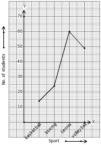 The following line graph gives data regarding the favourite sport of 147 students of a school. Identify the table for the given line graph.