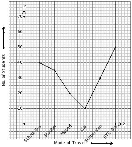 185 students of a school use different modes of travel to school. Identify the table for the given line graph.