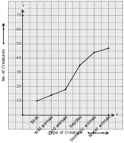 There are 168 creatures in a zoo as shown in the line graph. Identify the table for the given line graph.