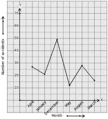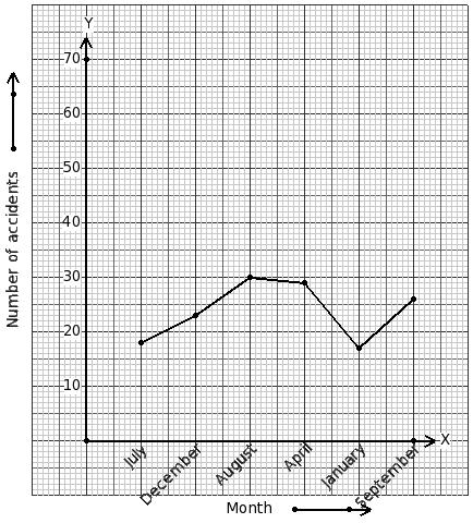 Given below is a line graph showing the number of accidents in a city during the given months of a certain year. Identify the table for the given line graph.