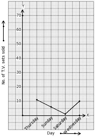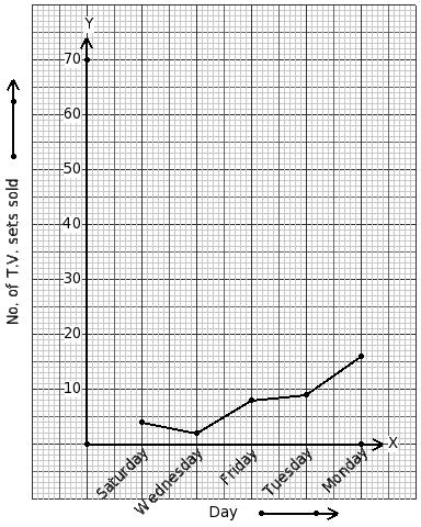 The number of T.V. sets sold by a shop in a certain week is given below. Identify the table for the given line graph.