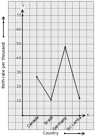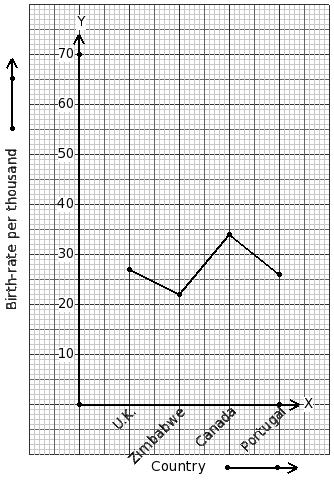 The birth-rate per thousand of 4 countries over a period of time is shown below. Identify the table for the given line graph.