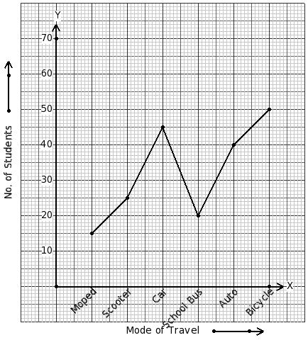 195 students of a school use different modes of travel to school. Identify the table for the given line graph.