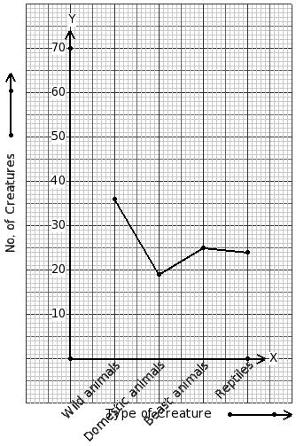 There are 104 creatures in a zoo as shown in the line graph. Identify the table for the given line graph.