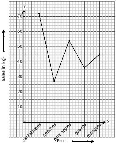 The below graph gives a comparative account of sales(in kg) of various fruits on a certain day. Identify the table for the given line graph.