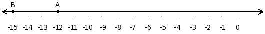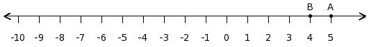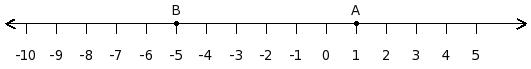 Find the difference between the values of numbers at point A and B