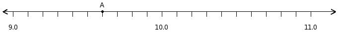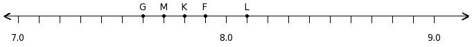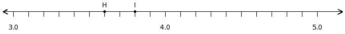 Find the difference of the decimal numbers at the points labelled with letters H and I