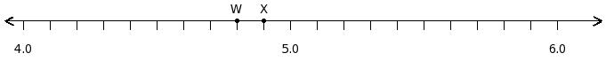 Find the difference of the decimal numbers at the points labelled with letters W and X