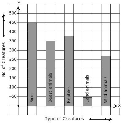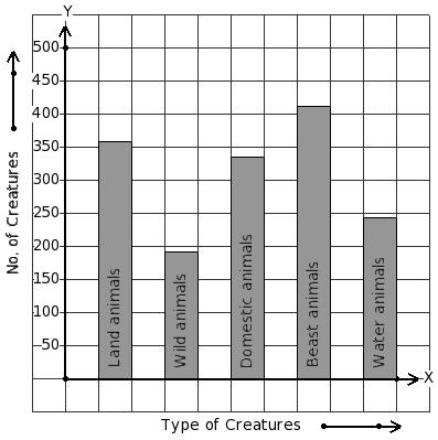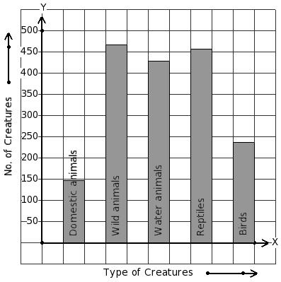 There are 1494 creatures in a zoo as shown in the bar graph. Identify the table for the given bar diagram.