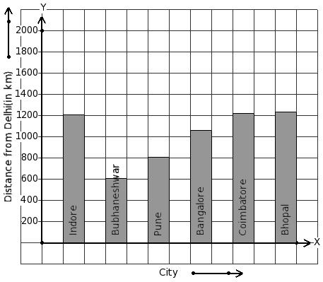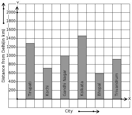 The air distance of some cities from Delhi (in km) are given below. Find the city that has maximum distance.
