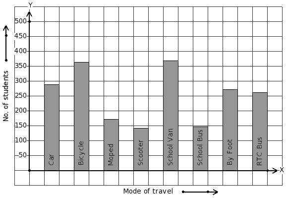 Students of a certain locality use different modes of travel to school as given below. Find the mode of travel that has minimum students.