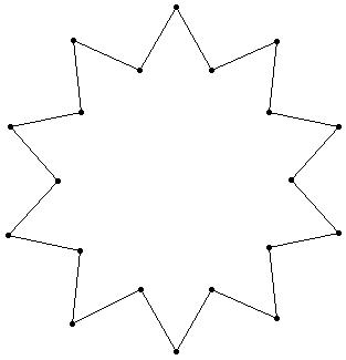 If the length between any two consecutive points is 5.5 cm, find the perimeter of the following figure