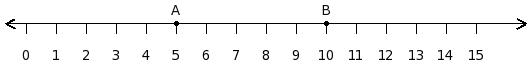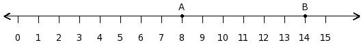 Find the difference between the values of numbers at point A and B