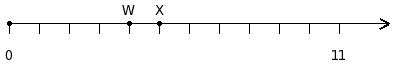 Find the difference of the two numbers at the points labelled with letters W and X