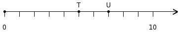 Find the difference of the two numbers at the points labelled with letters T and U