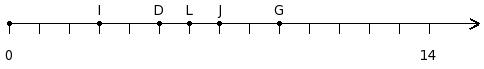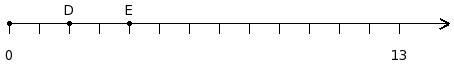 Find the sum of the two numbers at the points labelled with letters D and E