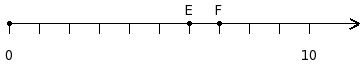 Find the product of the two numbers at the points labelled with letters E and F