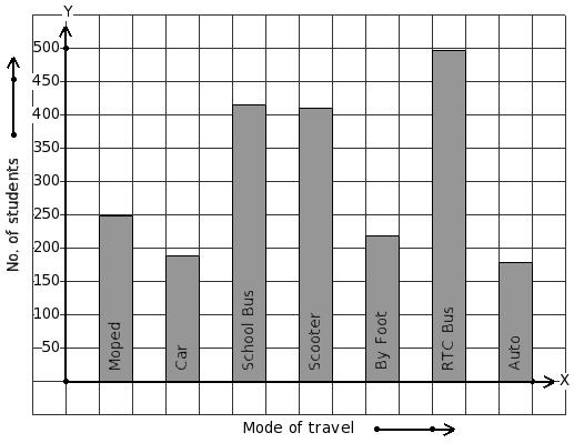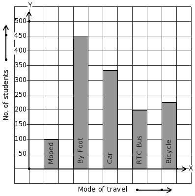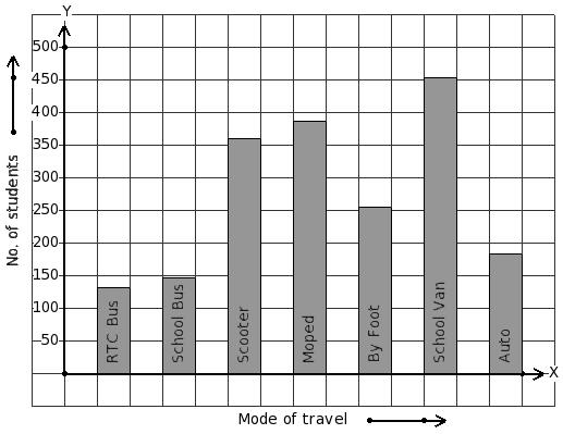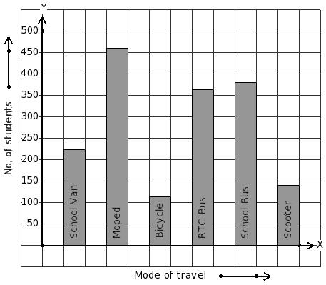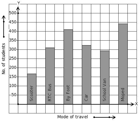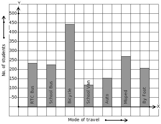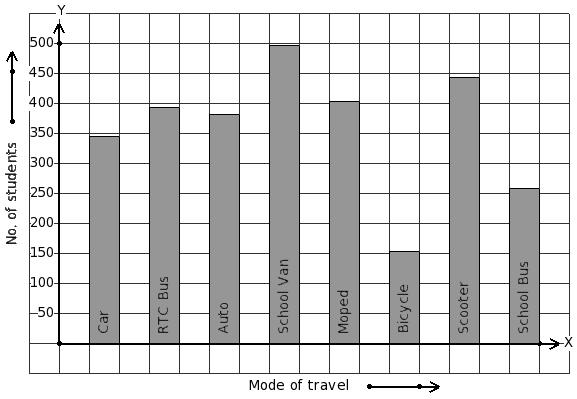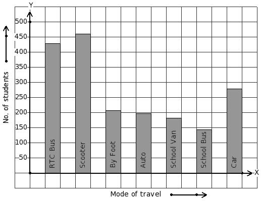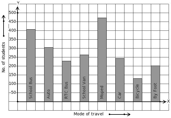Students of a certain locality use different modes of travel to school as given below. Find the mode of travel that has minimum students.