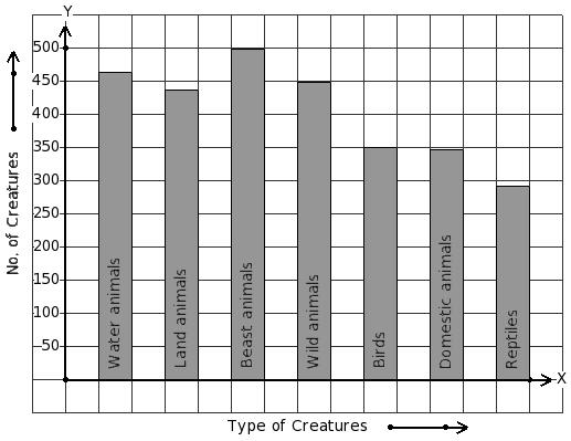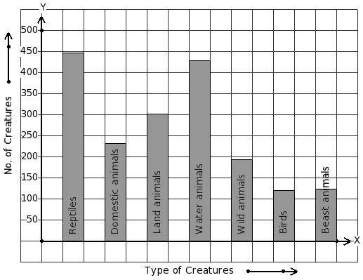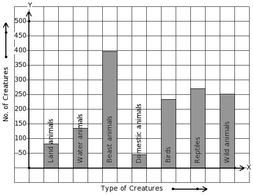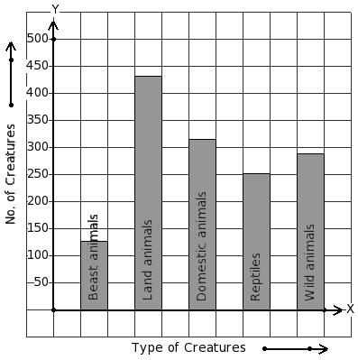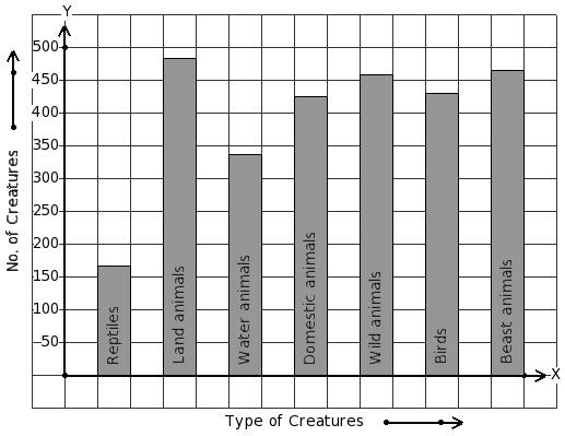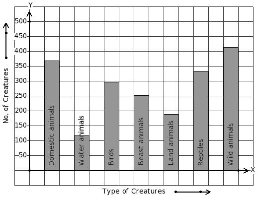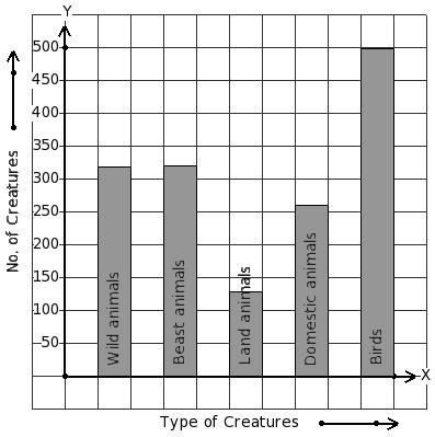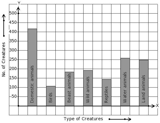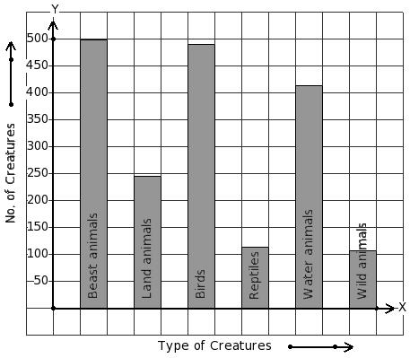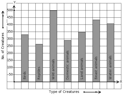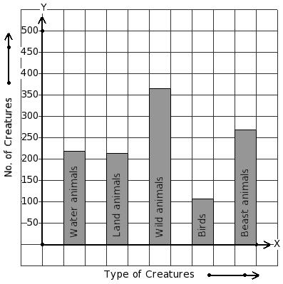 There are 1413 creatures in a zoo as shown in the bar graph. Identify the table for the given bar diagram.