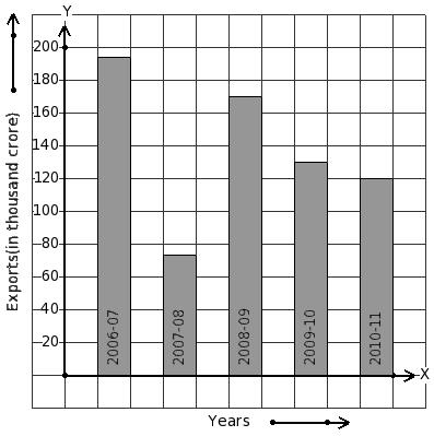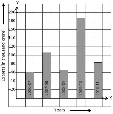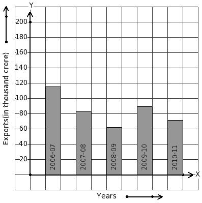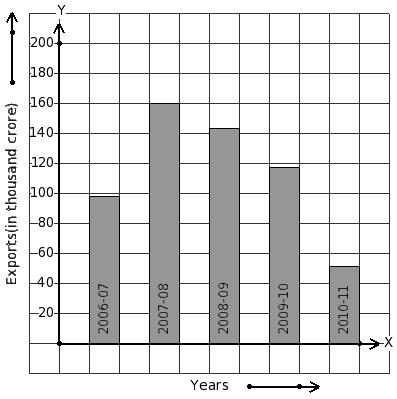 The following bar graph shows the export earnings of a country (in thousand crore) during five years. Find the year that has maximum export earnings.