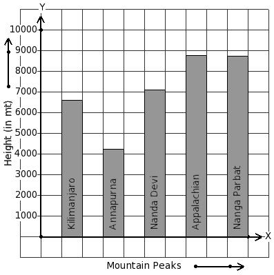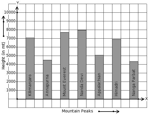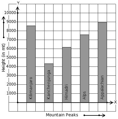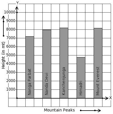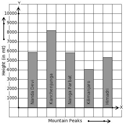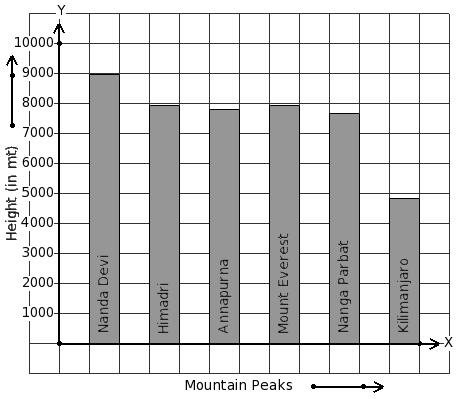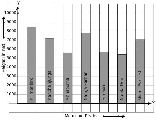 Given below is the column-graph showing heights of some mountain peaks. Find the mountain that has minimum height.