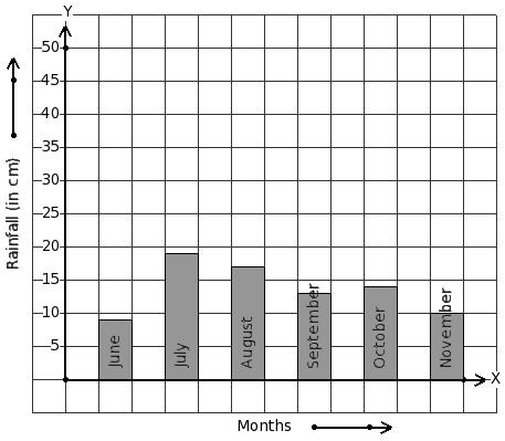 Read the given column-graph. Find the month that has 14 cm rainfall.