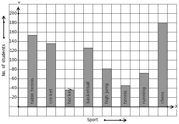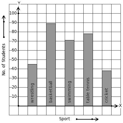The following bar graph gives data regarding the favourite sport of 396 students of a school. Identify the table for the given bar diagram.