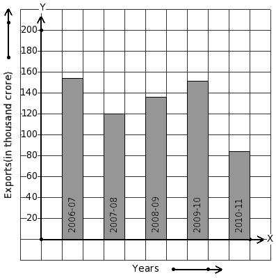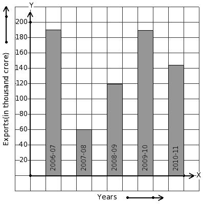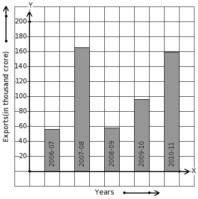The following bar graph shows the export earnings of a country (in thousand crore) during five years. Find the year that has 56 thousand crore export earnings.