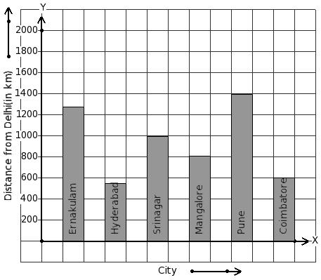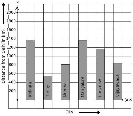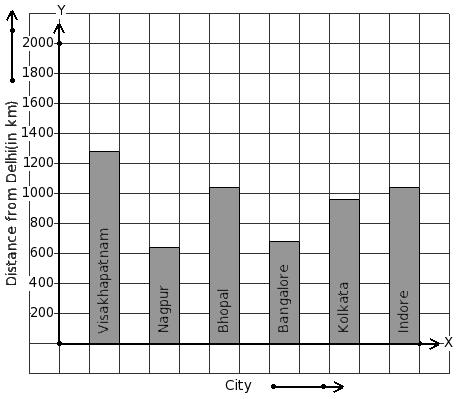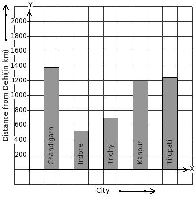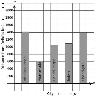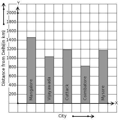 The air distance of some cities from Delhi (in km) are given below. Find the city that has maximum distance.