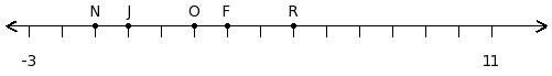 Find the sum of the two numbers at the points labelled with letters N and O