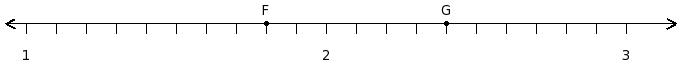 Find the sum of the rational numbers at the points labelled with letters F and G