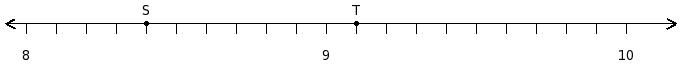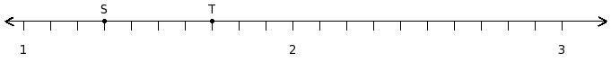 Find the product of the rational numbers at the points labelled with letters S and T