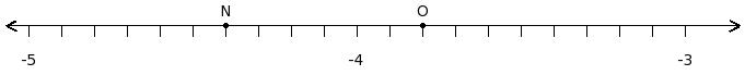 Find the product of the rational numbers at the points labelled with letters N and O