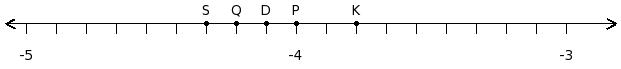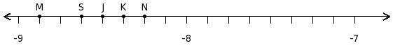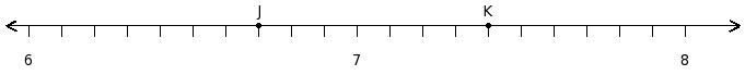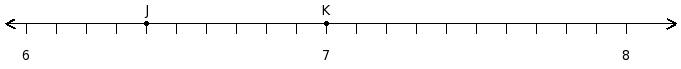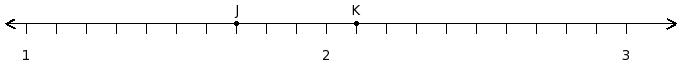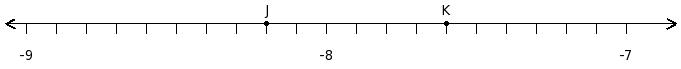 Find the difference of the rational numbers at the points labelled with letters J and K