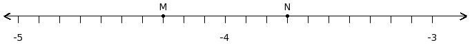 Find the difference of the rational numbers at the points labelled with letters M and N