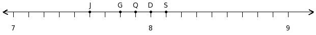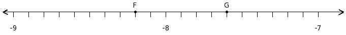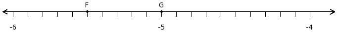 Find the product of the rational numbers at the points labelled with letters F and G