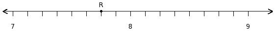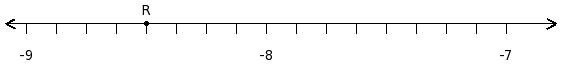Find the rational number at the point labelled with letter R
