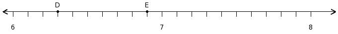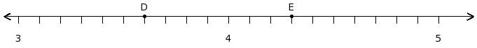 Find the product of the rational numbers at the points labelled with letters D and E