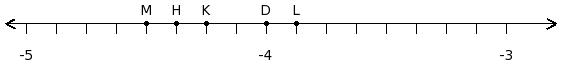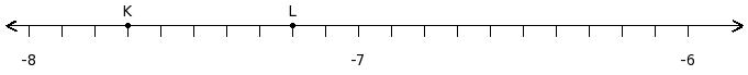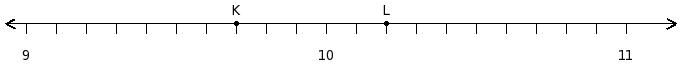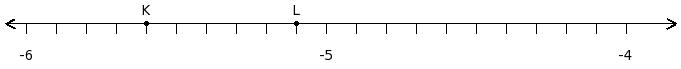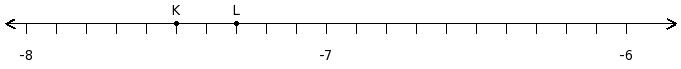 Find the difference of the rational numbers at the points labelled with letters K and L