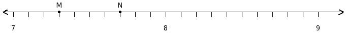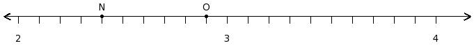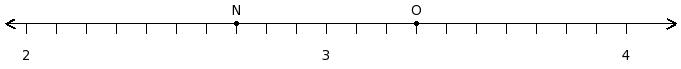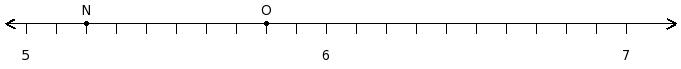 Find the difference of the rational numbers at the points labelled with letters N and O