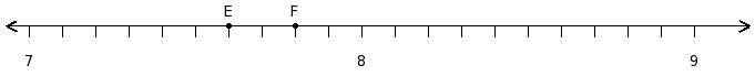 Find the difference of the rational numbers at the points labelled with letters E and F