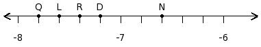 Find the sum of the rational numbers at the points labelled with letters Q and R